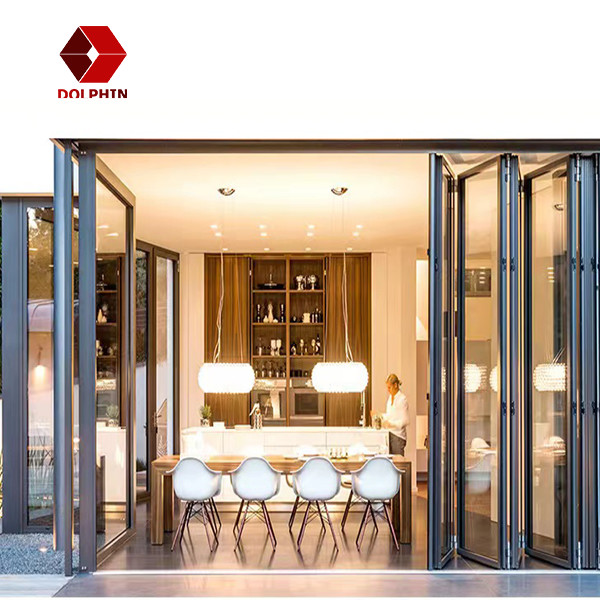 ประตูพับอลูมิเนียม DOLPHIN ครัวหีบเพลงกระจกอลูมิเนียมแบบกำหนดเอง Bi Fold Doors